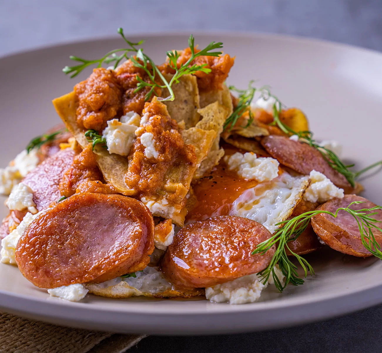 Huevos Rancheros con Salchicha de Pavo Polaca