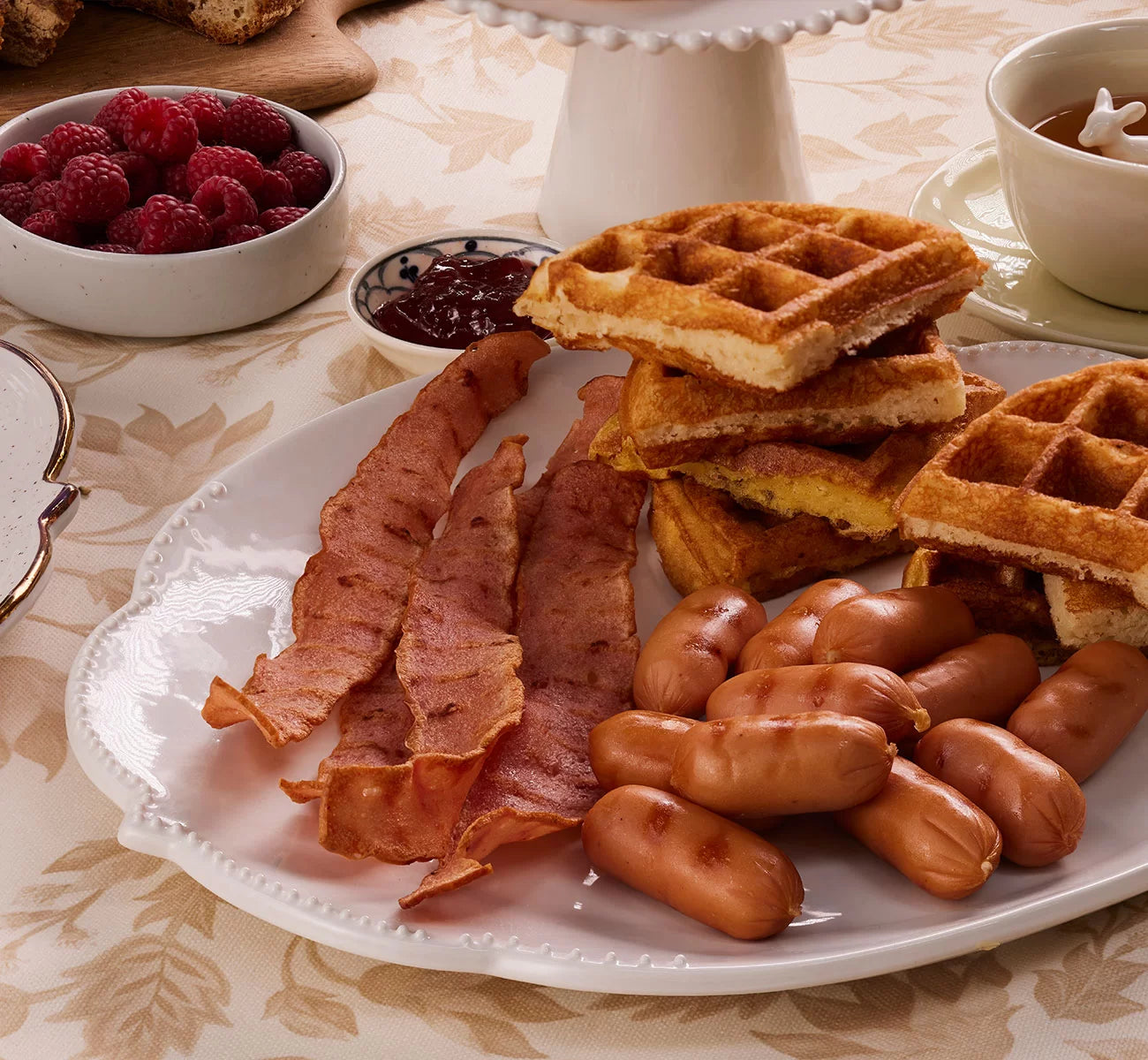 Waffles con Salchichitas y Tocineta de Pavo