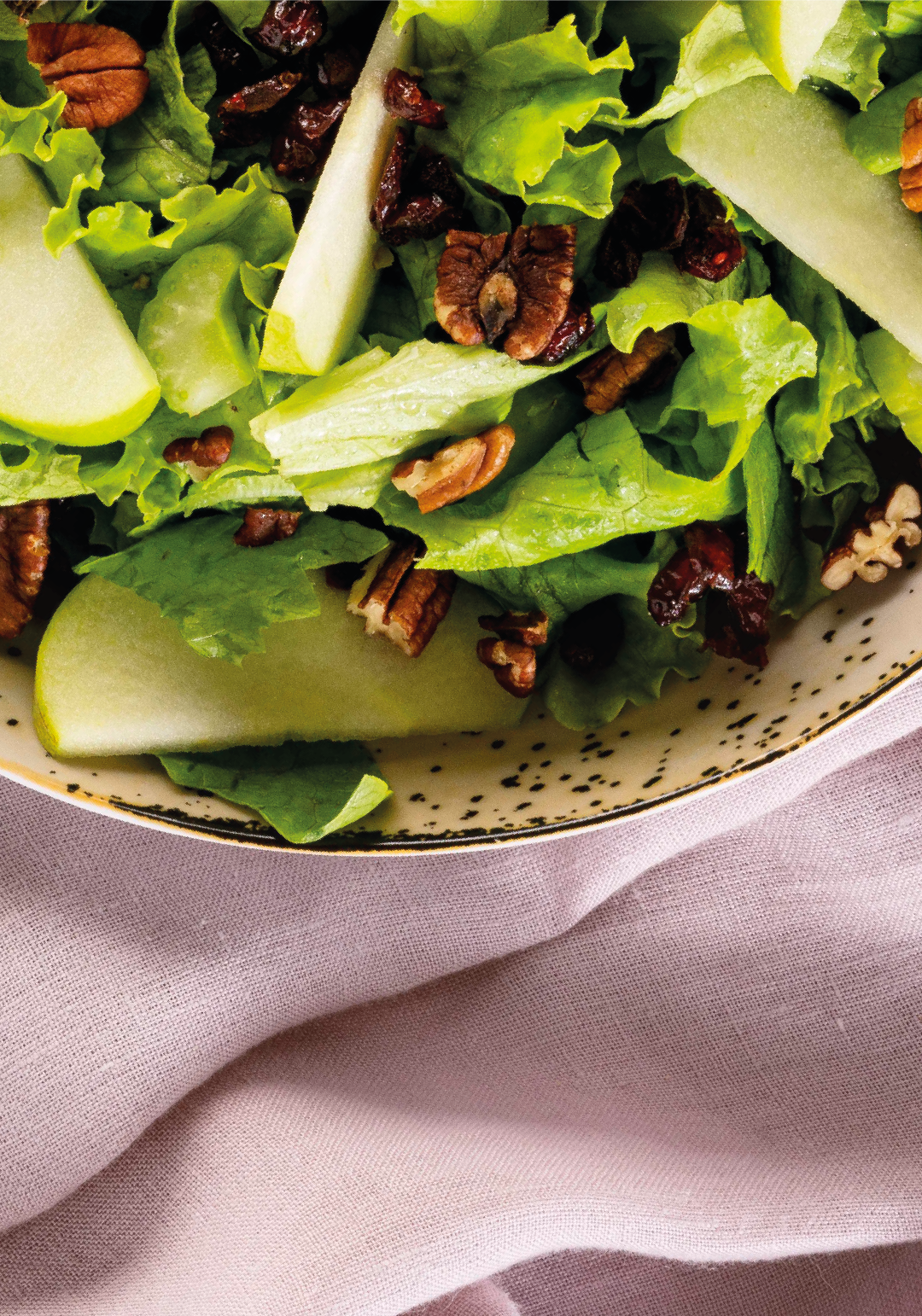 Lechuga crespa, alcachofa marinada, aceituna negra, lentejas crocantes, tomate cherry, cebolla encurtida, vinagreta con balsámico, almendras fileteadas, cranberries o arándanos deshidratados $30,000